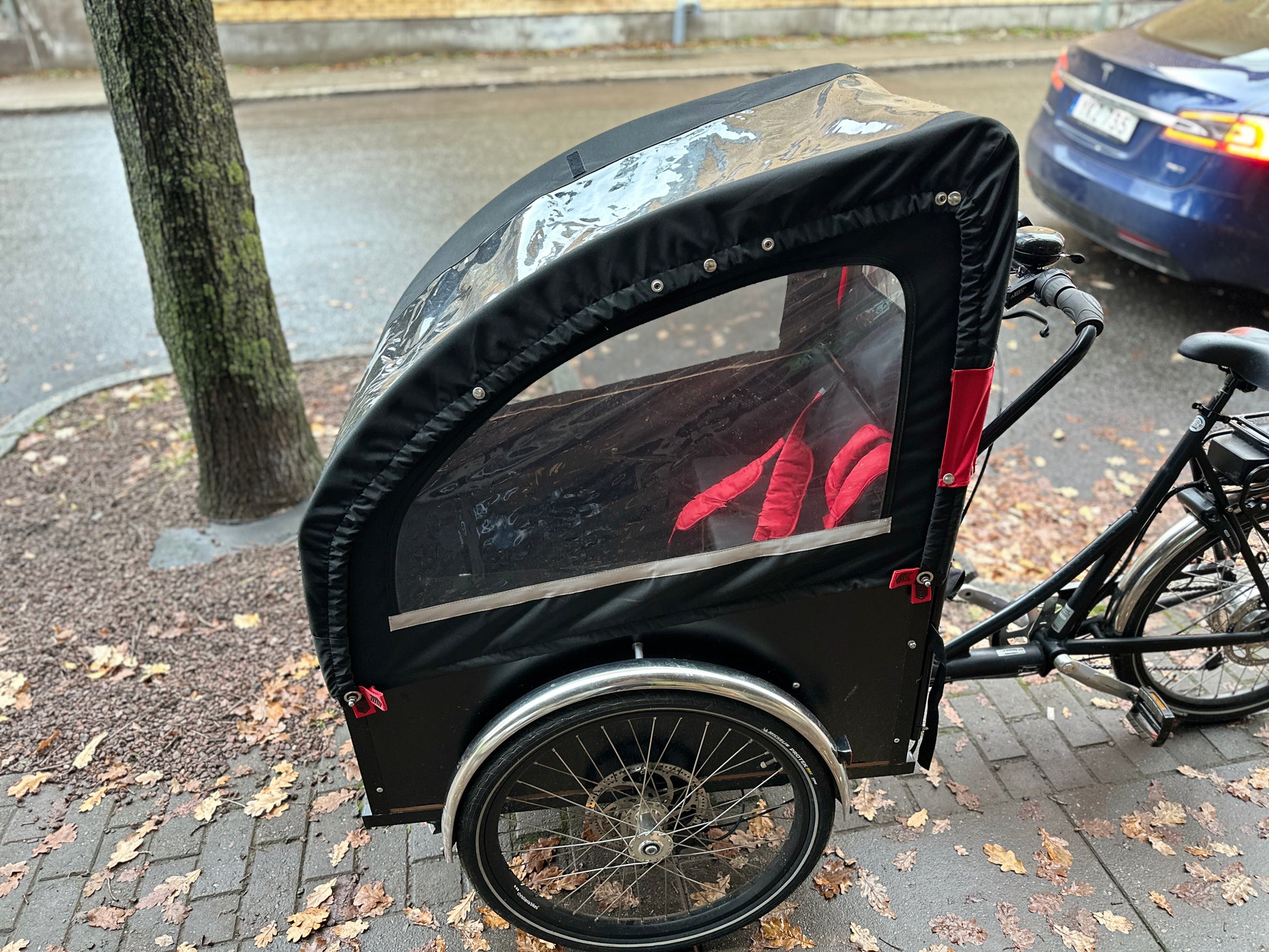 - Belysning LED, fram och bak. Kopplat till cykelbatteriet