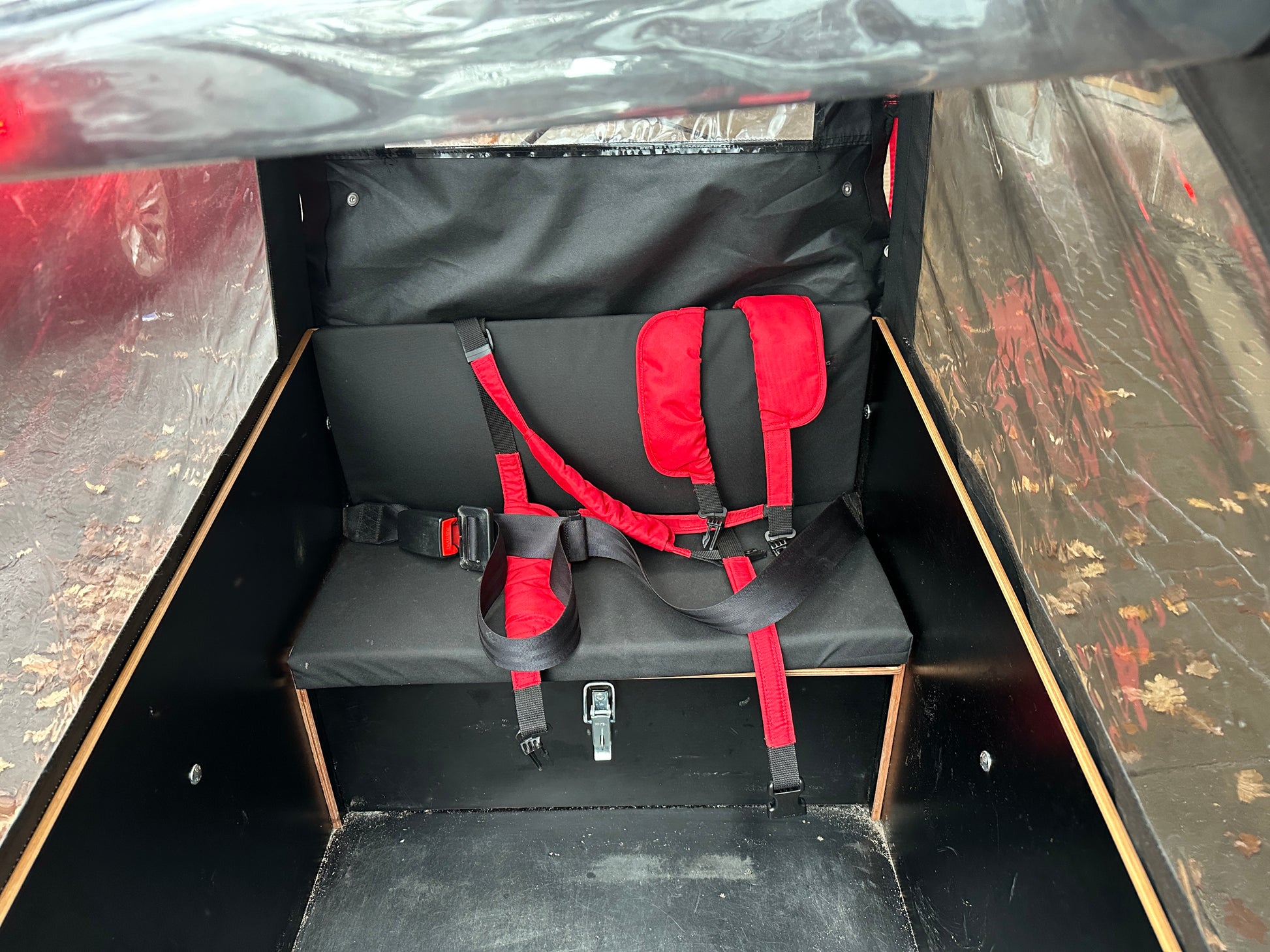 Sitsen som har en mjuk dyna kan enkelt fällas ihop om man skall transportera stora och tunga saker. Upp till 100kg kan man ha i lådan.